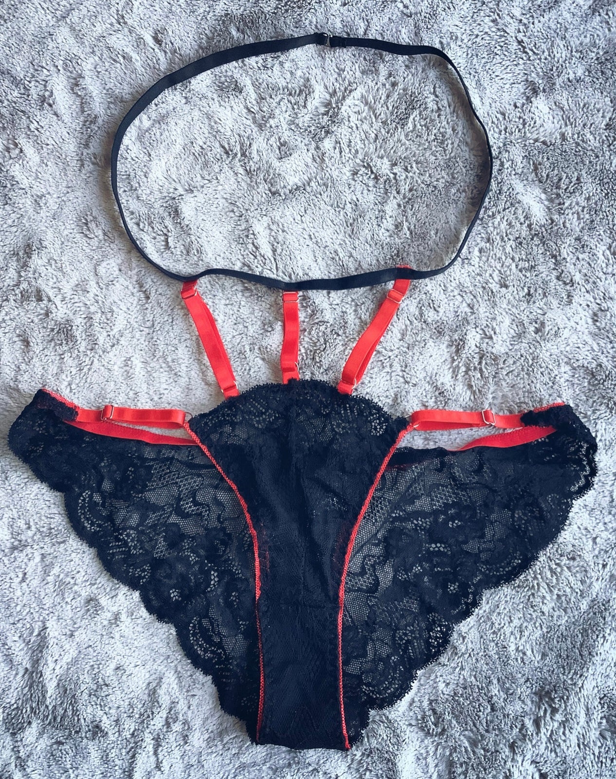This panty is exquisitely designed with a full back cover and adjustable red straps on the front. It's both comfortable and visually appealing, making it a must-have addition to your lingerie collection.