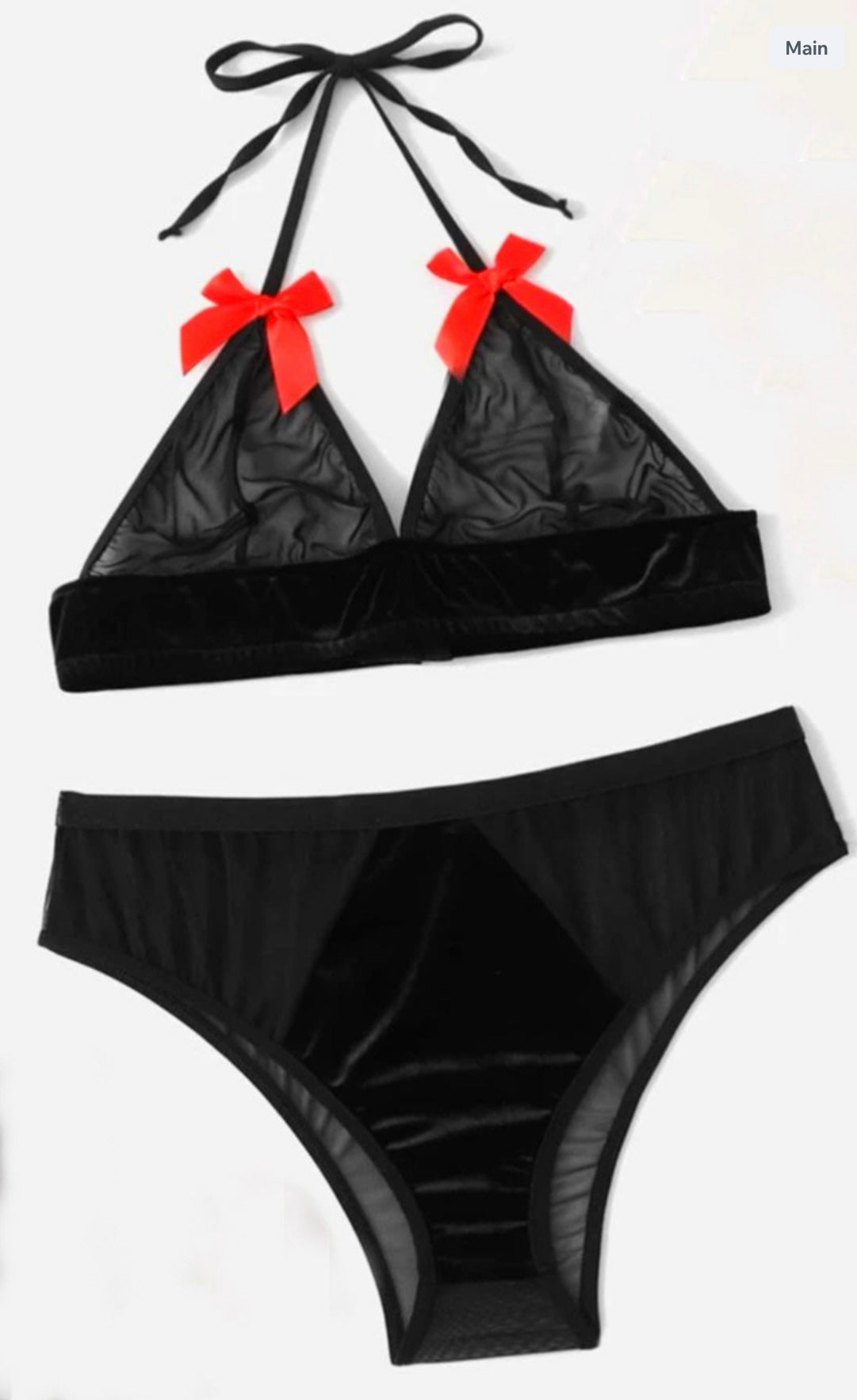 Profitez de la sensation luxueuse du velours et de la sensualité de la maille avec ce magnifique ensemble de lingerie. Les accents de nœud rouge ajoutent une touche ludique et les bretelles réglables assurent un ajustement confortable.